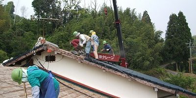 5月262006屋根リフォーム今日から瓦のリフォームの流れをご紹介したいと思います。まず始めに瓦の撤去作業です。クレーンを使って瓦を下ろします。ほとんど2時間~半日程度で撤去完了です。 Share this post Share on FacebookShare on Facebook Share on XShare on X Author: 山城産業 熊本県の屋根リフォーム、雨漏り修理まお任せ下さい。 屋根工事全般、太陽光発電システム、フェンス、カバールーフ等、各種施工・販売 Post navigationPreviousPrevious post:熊本城NextNext post:瓦葺替工事(桟木打ち)関連記事セメント瓦(和型)葺替工事!!2006年5月26日屋根の葺き替え完了2006年5月26日雨漏り修理依頼2006年5月26日本社工場屋根カバールーフ工事2006年5月26日熊日リフォームフェア2013(グランメッセ展示会)2006年5月26日本葺き瓦工事2006年5月26日ROOGA工事3(瓦桟木工事)2006年5月26日石州防災瓦2006年5月26日完成!(葺替え工事)2006年5月26日本棟工事(仕上げ)2006年5月26日ひと安心。。本体工事完了!(葺替え工事)2006年5月26日瓦葺替え工事(本体工事)2006年5月26日瓦葺替え工事(瓦あげ編)2006年5月26日瓦葺替工事(桟木打ち)2006年5月26日水切り納め!2006年5月26日熊本市のお寺2006年5月26日