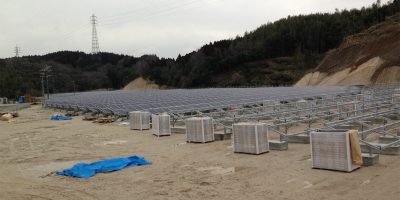 先月完了しました、地元南関町のメガソーラー発電所の設置工事になります。