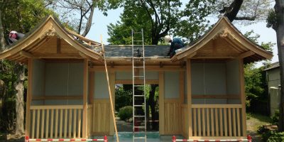 今、仁王様は名古屋の方に修復にいかれております。8月上旬の完成へ急ピッチで工事いたします。