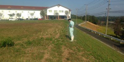 今回は測量、造成工事から引き受けておりますのでまずはモジュールの位置だしの測量から行います。