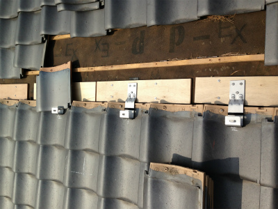 今回、ソーラーフロンティアさんの太陽光発電システムを工事しました。瓦屋根の家に、支持金具を取付ける設置方法です。ちゃんとタルキの位置に補助材を取付けて工事します。風にも安心ですね!!瓦葺き1級の職人が施工しますので、雨漏…