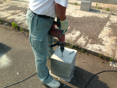 基礎工事も完了し、アンカー工事に着手しました。あとアンカーにしたので、掘削工事です。 ここで活躍したのが、HILTIの振動ドリル(^^)このHILTIは本当にすばらしい工具です! なんと半日で180個の掘削工事が完了しま…